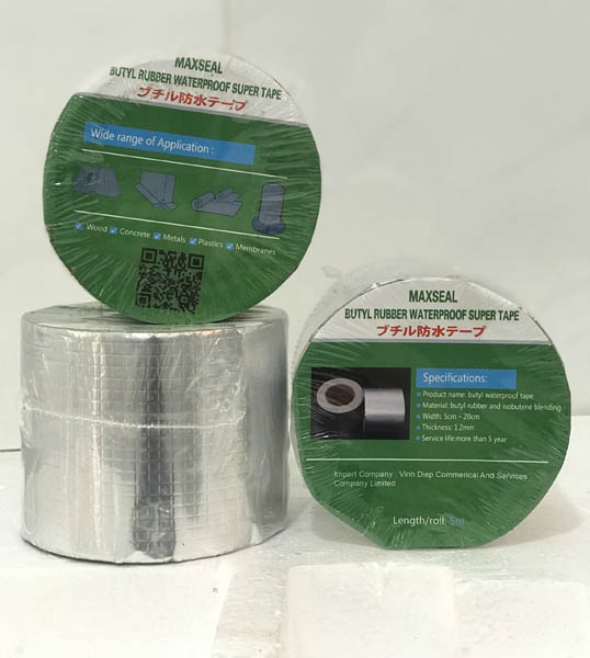 Băng keo chống thấm Maxseal Nhật Bản là sản phẩm hiện tại đang được quý khách hàng tin tưởng và sử dụng rất rộng rãi trên thị trường hiện nay, sản phẩm được sản xuất trên dây chuyền công nghệ tiến tiến về lĩnh vực chống thấm tại Nhật Bản, với thành phần chính là mủ cao su Butyl chống thấm và siêu kháng nước. Được phủ ngoài lớp keo là lớp nhôm dẻo giúp băng keo chống thấm thích hợp cho mọi loại thời tiết như nắng, mưa… Sản phẩm băng keo chống thấm Maxseal Nhật Bản và vật dụng không thể thiếu trong quá trình chống thấm dột, chống rò rỉ của mọi loại hạng mục. Sản phẩm được quý khách đánh giá cao về khả năng bám dính và chống thấm tuyệt đối của